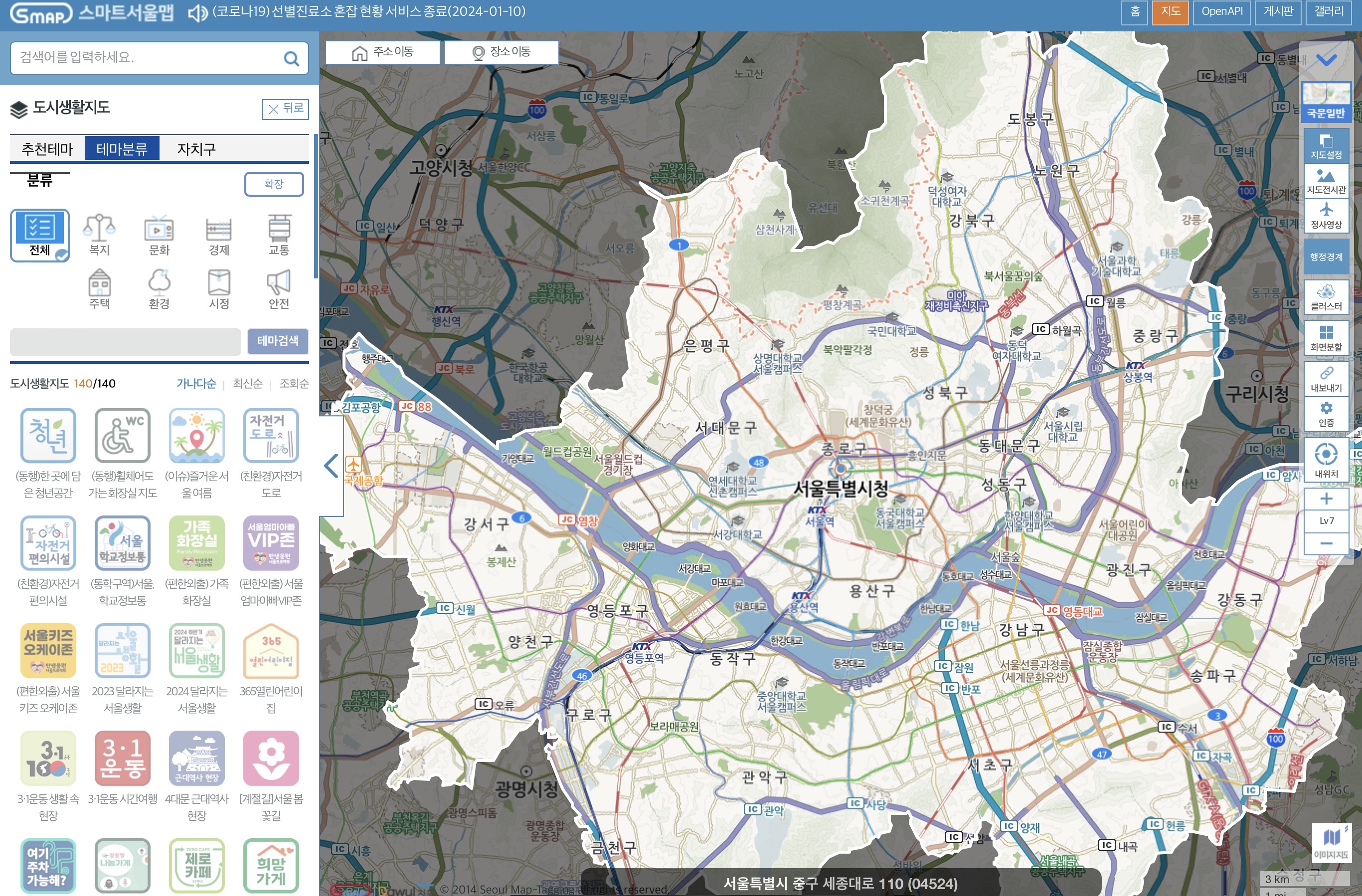 생활 속에서 필요한 여러가지 정보를 제공하는 스마트서울맵, 다른 기능들에 대해서도 차근히 살펴보시면 필요한 정보를 쉽고 빠르게 얻을 수 있습니다.