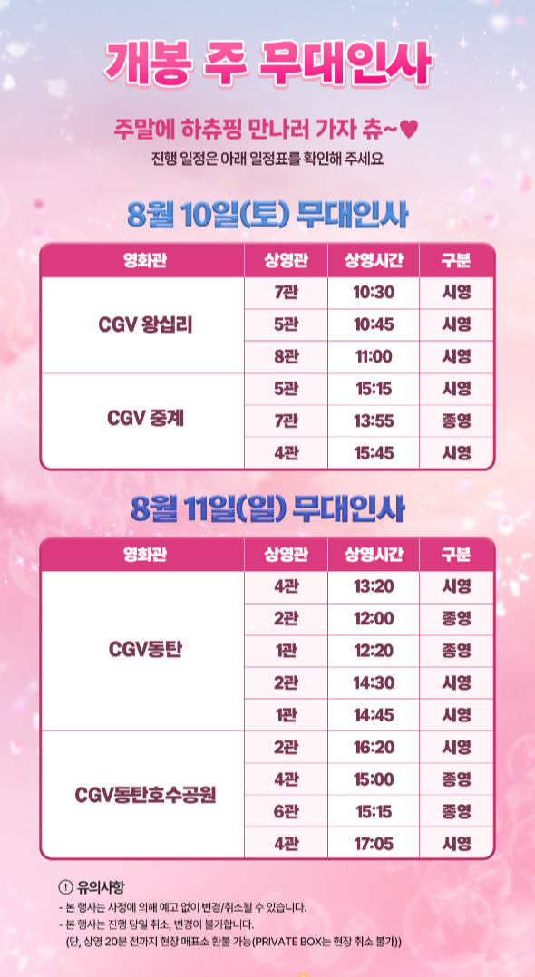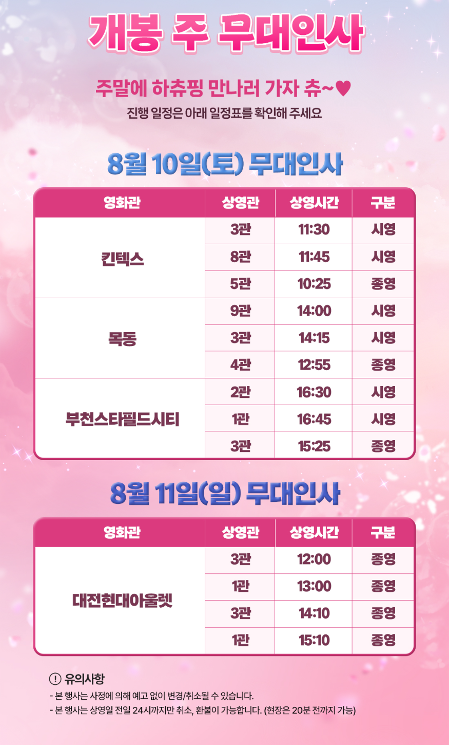 개봉 주 무대인사 8/10(토) 킨텍스, 목동, 부천스타필드시티, 8/11(일) 대전 현대아울렛