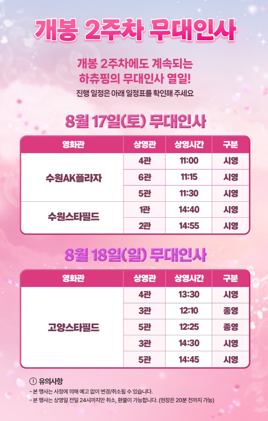 개봉 2주차 무대인사 8/17(토) 수원 AK플라자, 수원 스타필드, 8/18(일) 고양 스타필드